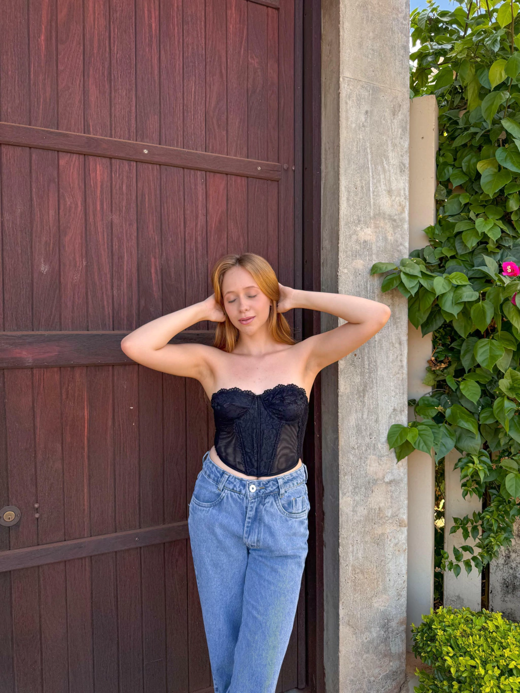 vai ser seu novo corset favoritooo! Todo forrado no busto e tem os detalhes em renda e tule. ele tem um leve formato em V, o que deixa ele ainda mais acinturado.